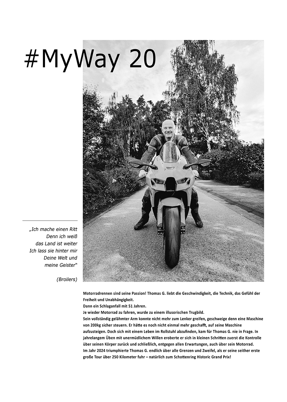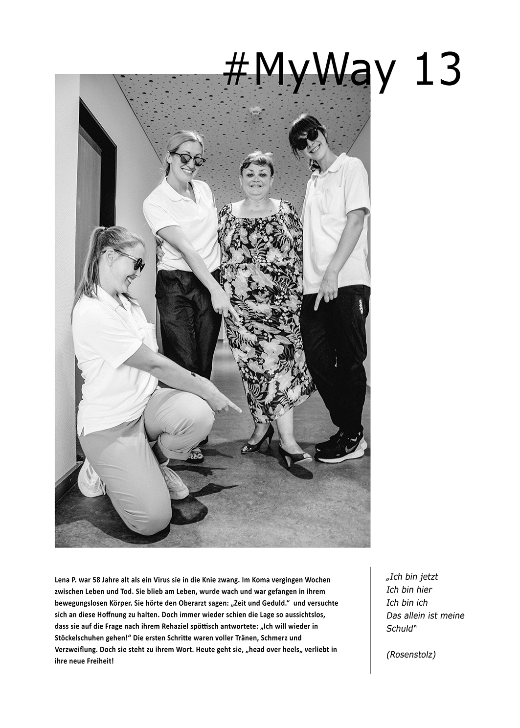 Diese persönlichen Geschichten aus der Rehabilitation erzählen von der Kraft, dem Mut und der Hoffnung, die notwendig sind, um nach einem schweren Unfall oder nach einer Erkrankung wieder zurück ins Leben zu finden. Die Fotos geben diesen Menschen eine Stimme. Lassen Sie sich inspirieren von unserer Photovoice „My Way“ und von dem Mut den eigenen „My Way“ zu finden.